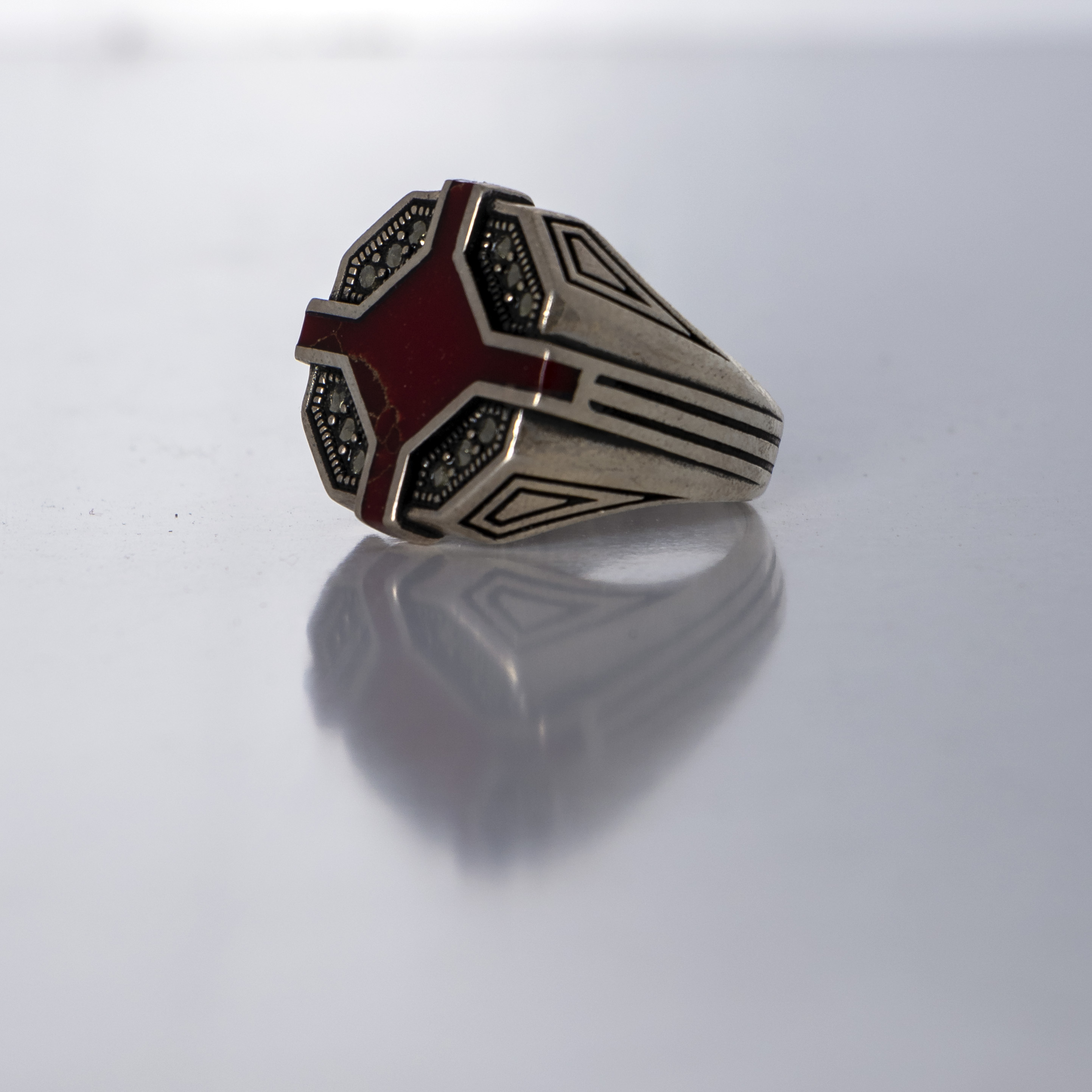 انگشتر نقره مردانه نگين عقيق و ماركازت