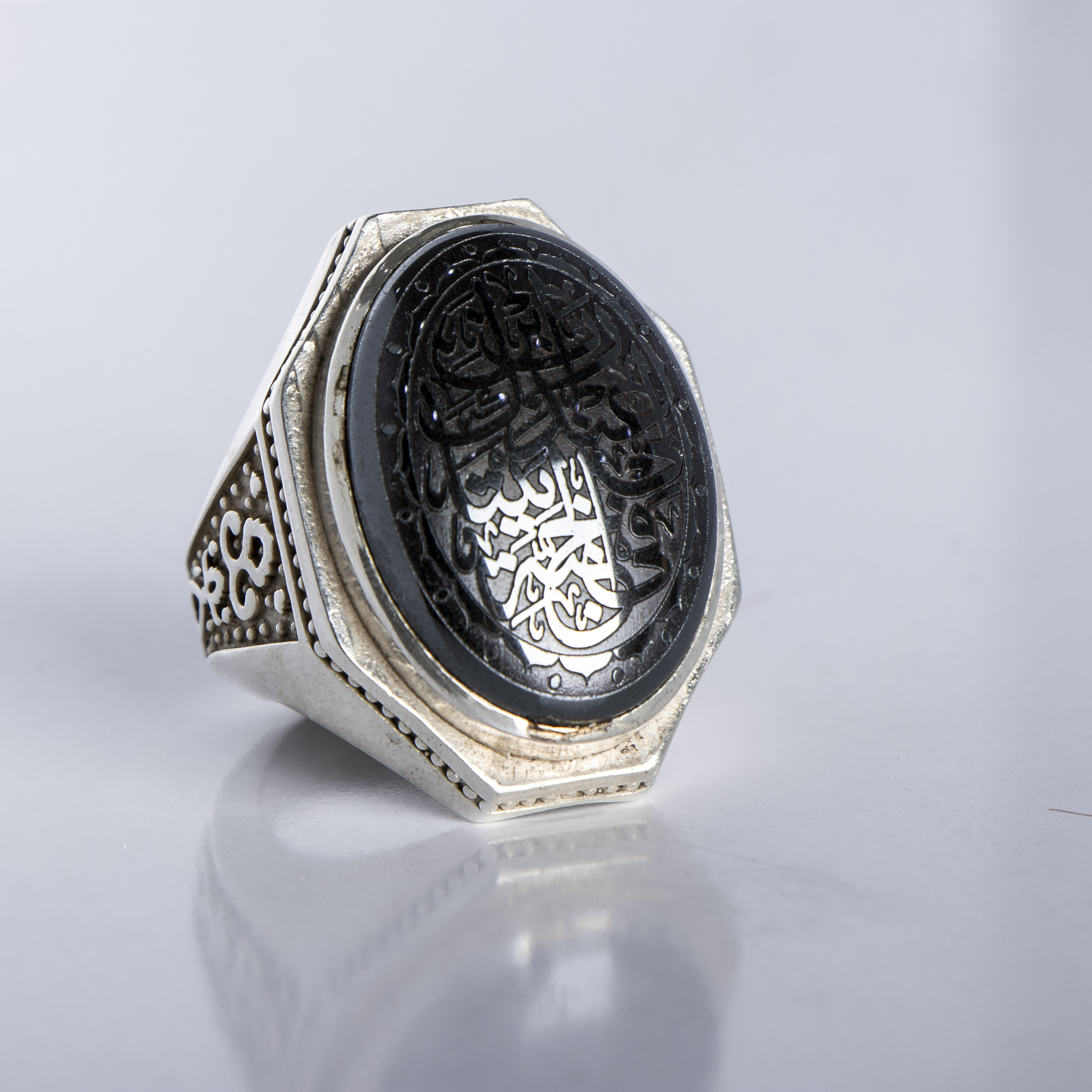انگشتر نقره مردانه سنگ حديد حكاكي شده